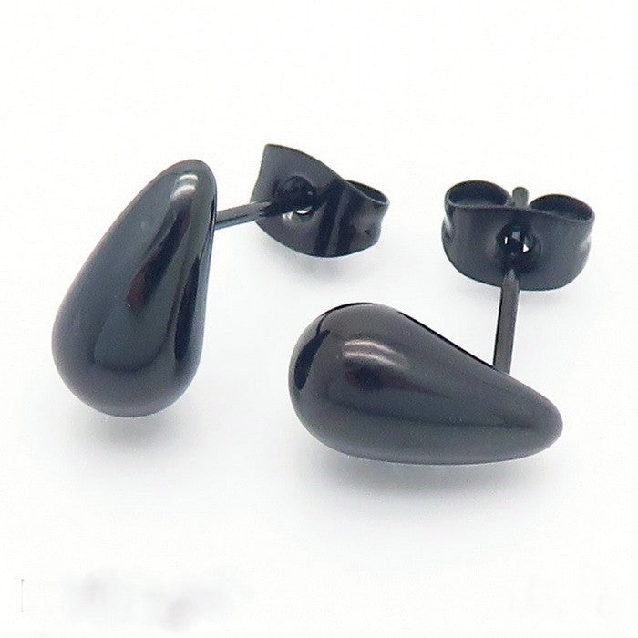 Aretes Gotita de Agua Negro. Acero Inoxidable.