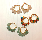 Aretes Bohemio. Cobre con Piedra Natural Chapado Oro De 18K