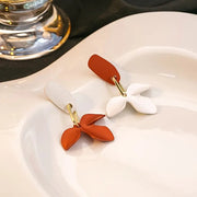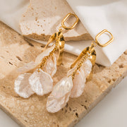 Aretes Pétalo. Acrílico y Acero Inoxidable Chapado en oro de 18k