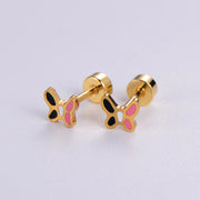 Aretes de Seguridad Mariposa Vintage. Acero Chapado Oro 18K