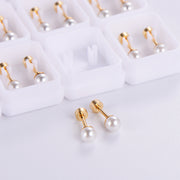 Aretes de Seguridad Perla de Imitación. Acero Chapado Oro