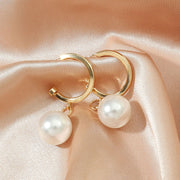 Aretes Estilo C con Colgantes De Perlas de Imitación. Cobre